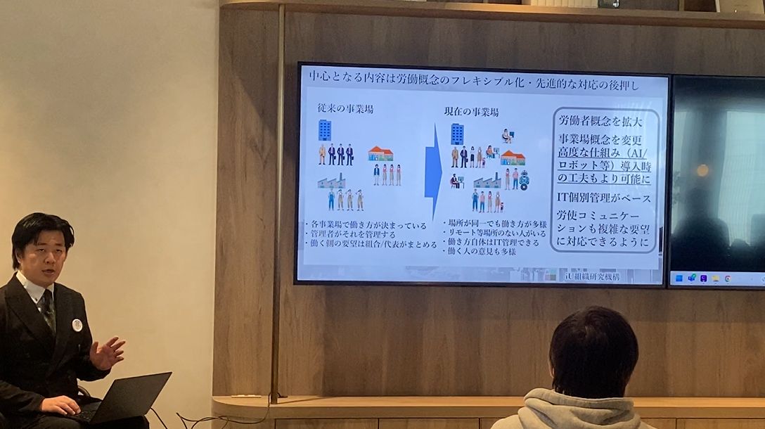 代表理事の松井勇策から、フィジカルAIやロボット対応についての雇用関連の対応ノウハウ構築の計画や、企業と連携した実証研究についての発表を行わせて頂きました。