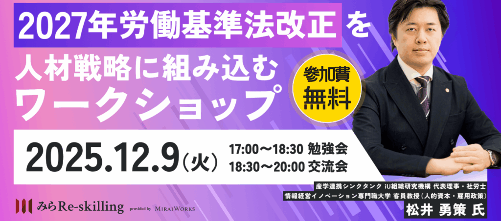 記事の詳細はこちら→ https://mirai-works.co.jp/re-skilling/re-seminar20251209/