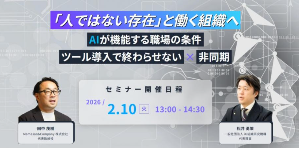 iU組織研究機構 代表理事の松井勇策がMamasan&Company株式会社が主催するオンラインセミナー「AIが機能する職場の条件」に登壇します。
